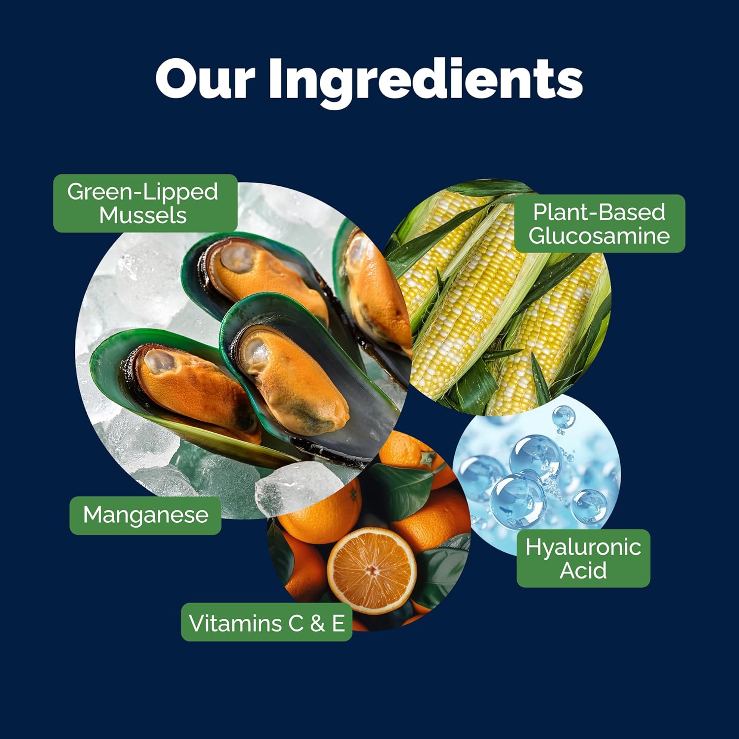 - NATURAL INGREDIENTS SUPPORTING DOG JOINTS : Dog joint chews that support joint structure, healthy cartilage, collagen and dog joint health. Manganese supports dog collagen formation in cartilage, tendons and ligaments, which helps maintain healthy joints. Includes: Glucosamine HCI 500mg, Green Lipped Mussel 300mg, Asorbic Acid Vitamin C 25mg, Manganese Sulfate 6mg, Hyaluronic Acid 3mg, D-Alpha Tocopherol Vitamin E 1mg
