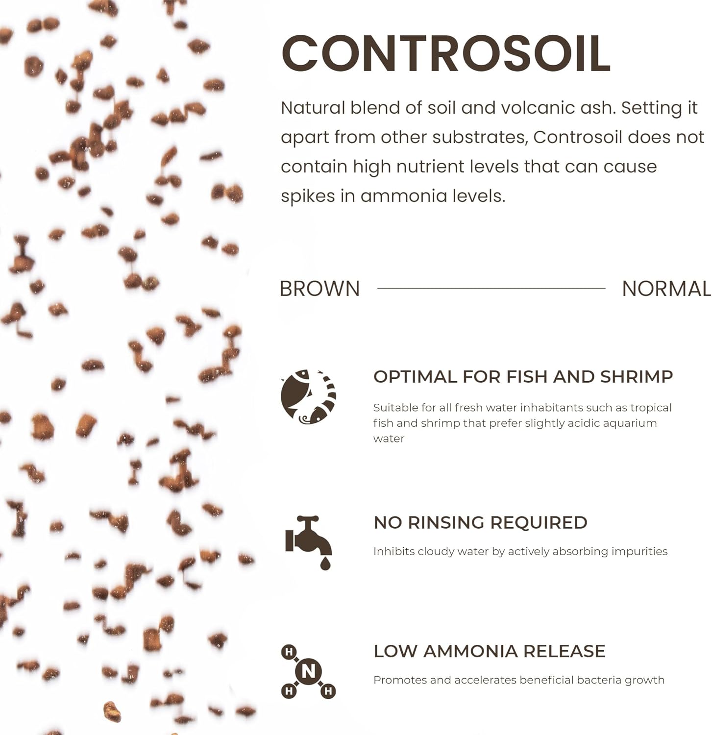 Ultum Nature Systems Controsoil - Freshwater Aqua Soil Substrate for Fish, Shrimp, Live Plant Propagation and Aquascaping - 6.8pH Low Ammonia, Volcanic Ash - Brown, Normal (3 Liter | 6LB)