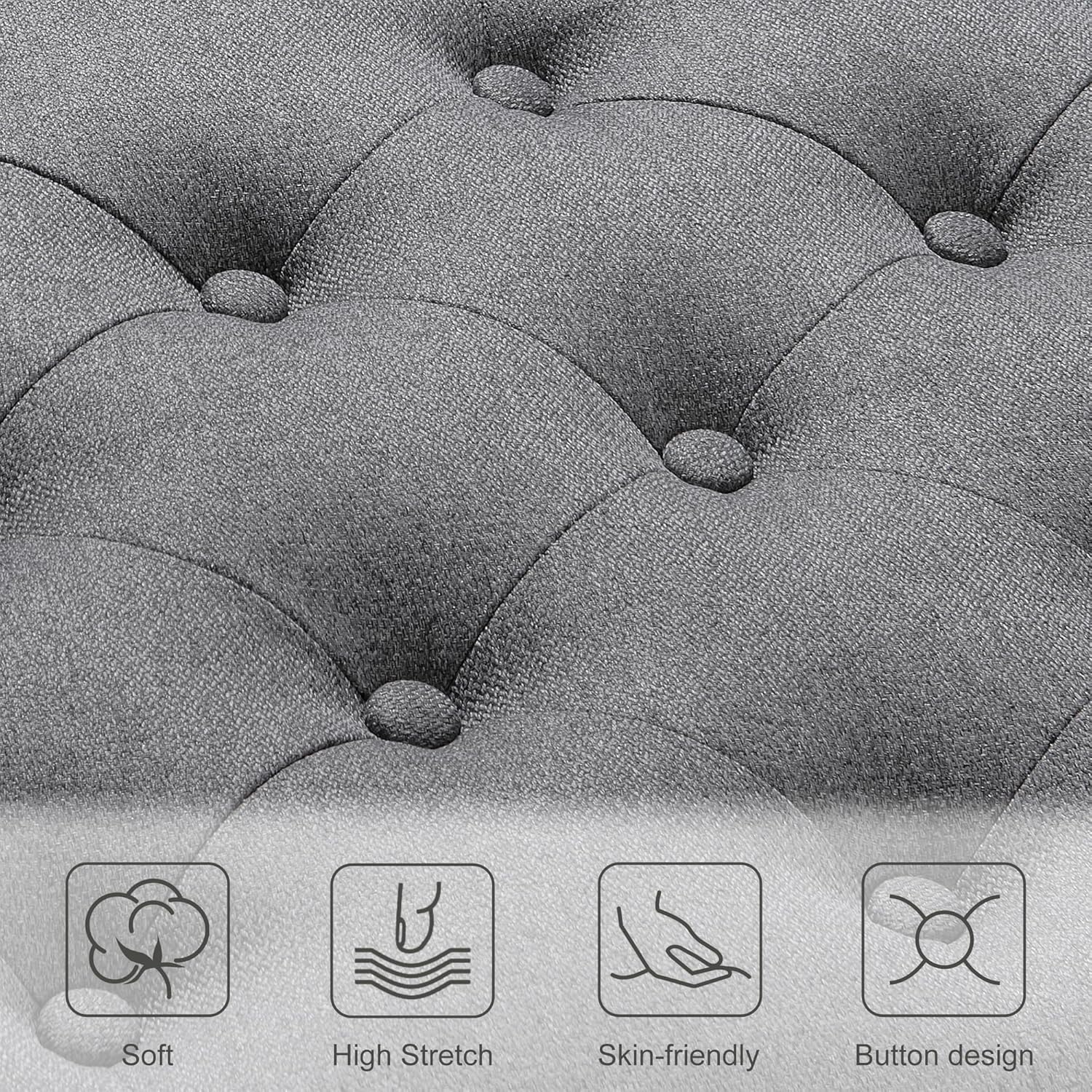 Ottoman with Storage,50.2-inch Upholstered End of Bed Storage Bench for Bedroom,for The Living Room,for Entryway, with Tray & Button and Safety Hinges,Detachable (Grey)