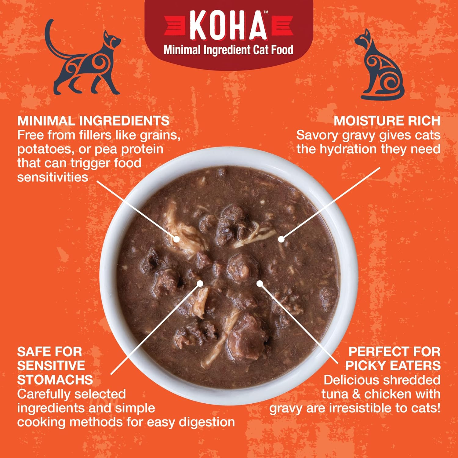 - Keep Your Cat Hydrated: Most cats don't drink enough water on their own. KOHA's moisture rich recipes increase hydration that is vital to your cat's health.