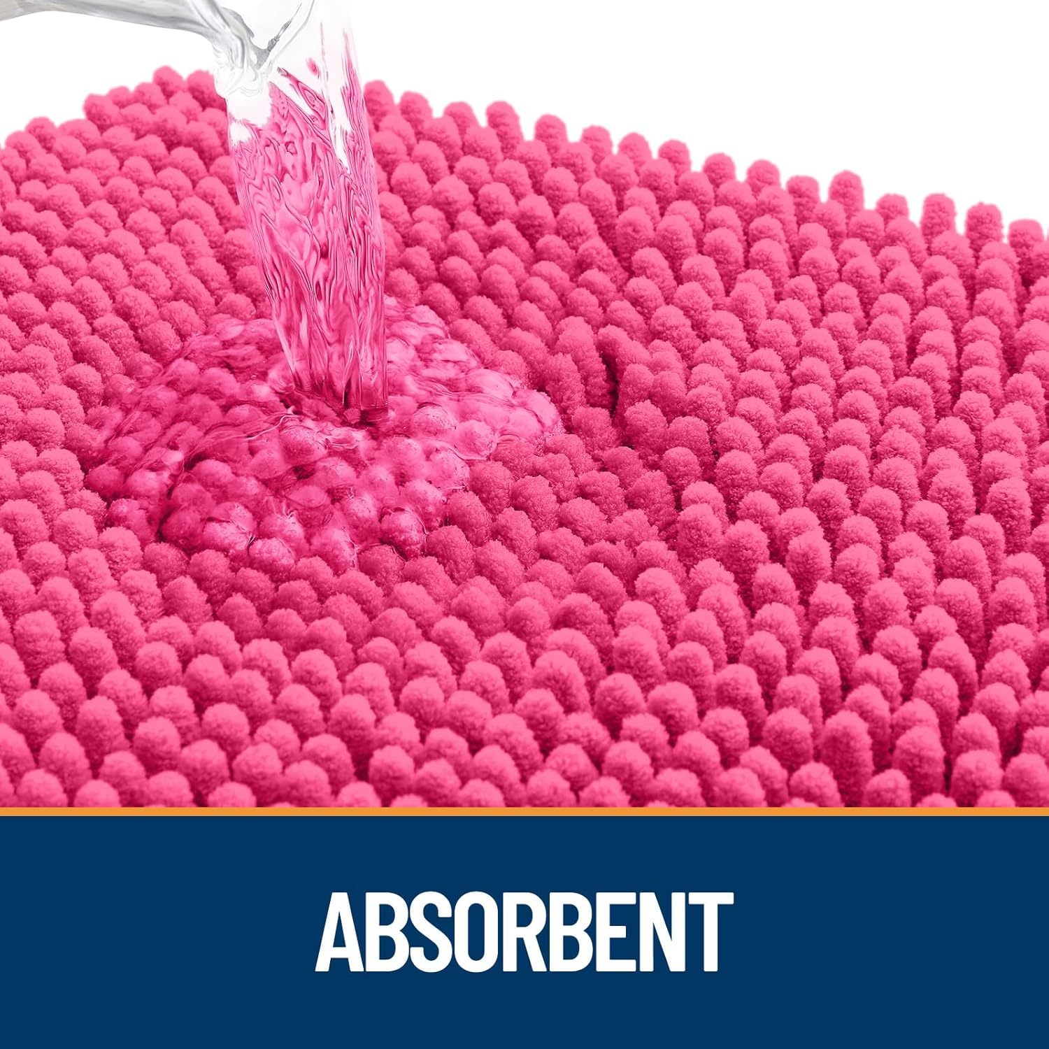 OLANLY Door Mat for Muddy Dog Paws 30x20, Ultra Absorbent Chenille Mud Doormat with Paw Print Design, Non-Slip Washable Doormat for Indoor Entryway, Quick-Dry Pet Bed Mats for Dirty Dogs, Hot Pink