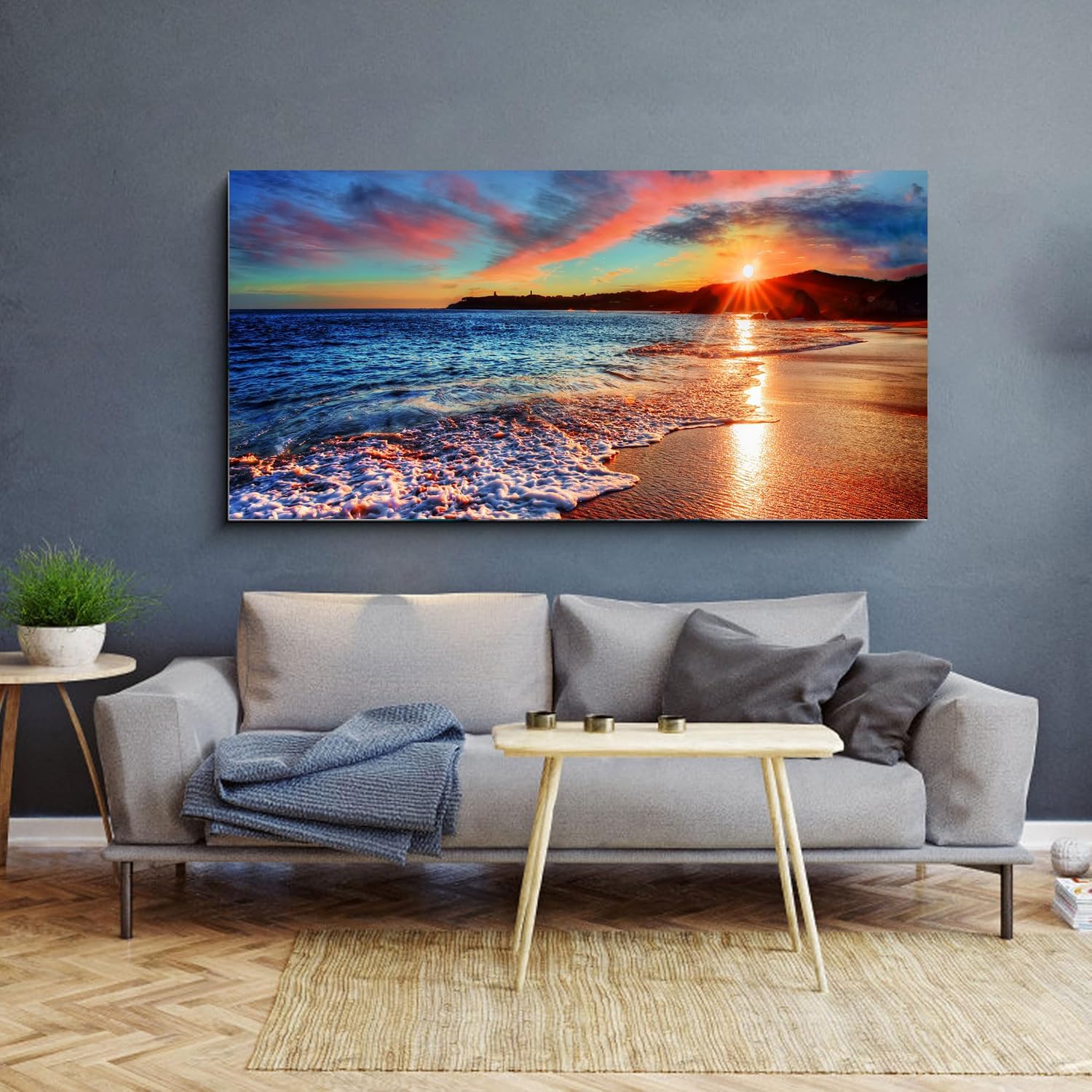- The huge ocean sunset coastal canvas print wall is an ideal addition to style up any rooms. It is suitable for bedroom, home, office, hotel, dining room or laundry. The framed beach canvas artwork is also a excellent gift for your family and friends