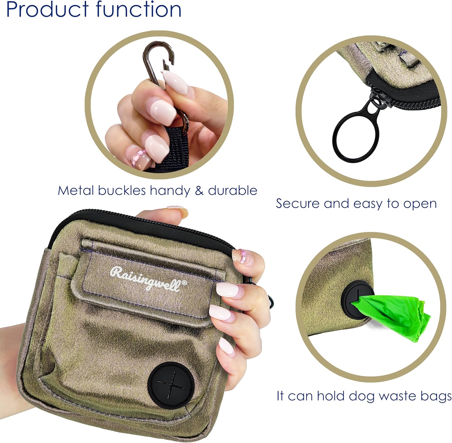 - 3、Durable Tech Material: Raisingwell's dog treat training pouchis made from durable, washable, and non-toxic fabric. Notably, its waterproof lining solves the problem of difficult-to-clean interiors of training bags.
